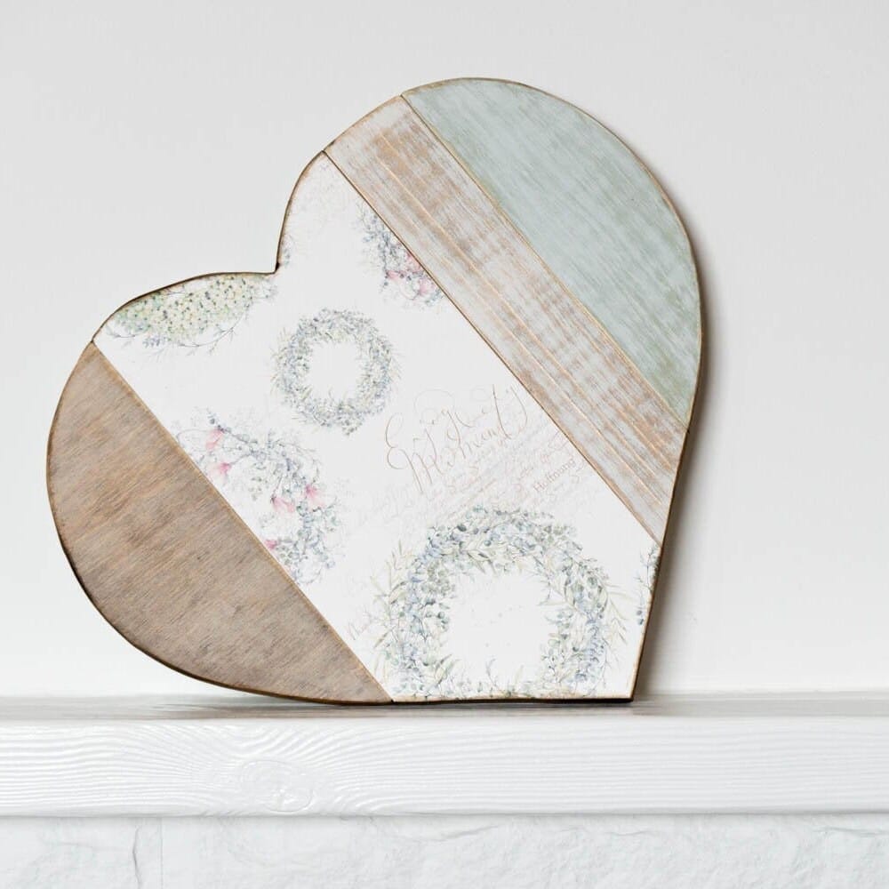 Añade un toque romántico y acogedor a tu hogar con este corazón de madera rústico, hecho a mano con detalles en tonos pastel, beige y blanco envejecido. Su diseño con coronas florales vintage y escritura antigua lo convierte en una pieza única de estilo shabby chic y farmhouse. Perfecto para regalar el día de la madre, bodas, aniversarios o rincones especiales. Úsalo en una mesa, estantería o como fondo decorativo en eventos. Ideal como regalo romántico hecho a mano.