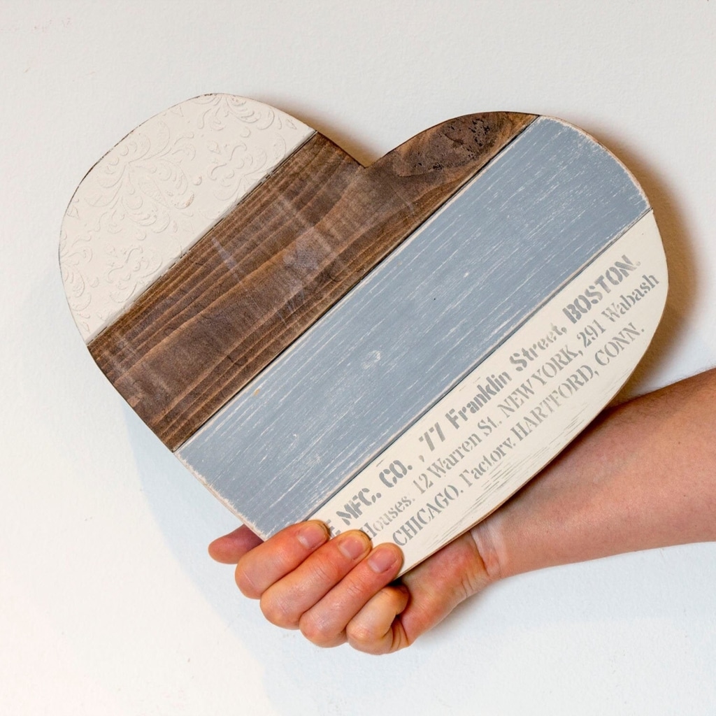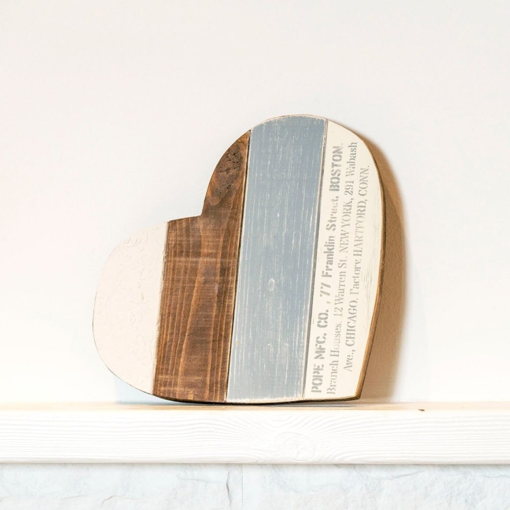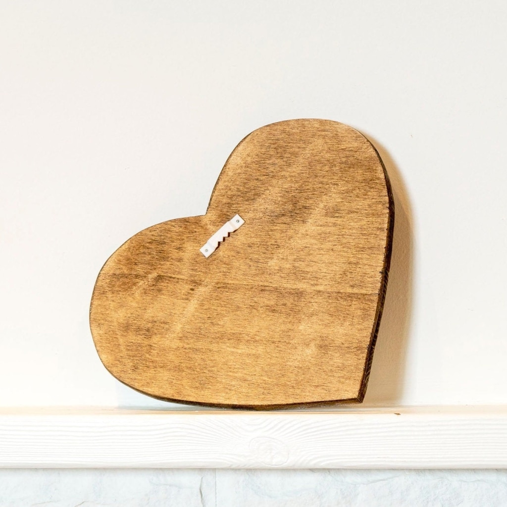 Corazón artesanal de madera de pino, de estilo rústico y perfecto para la decoración de una pared del salón o como decoración del recibidor. Bonito regalo de Navidad.