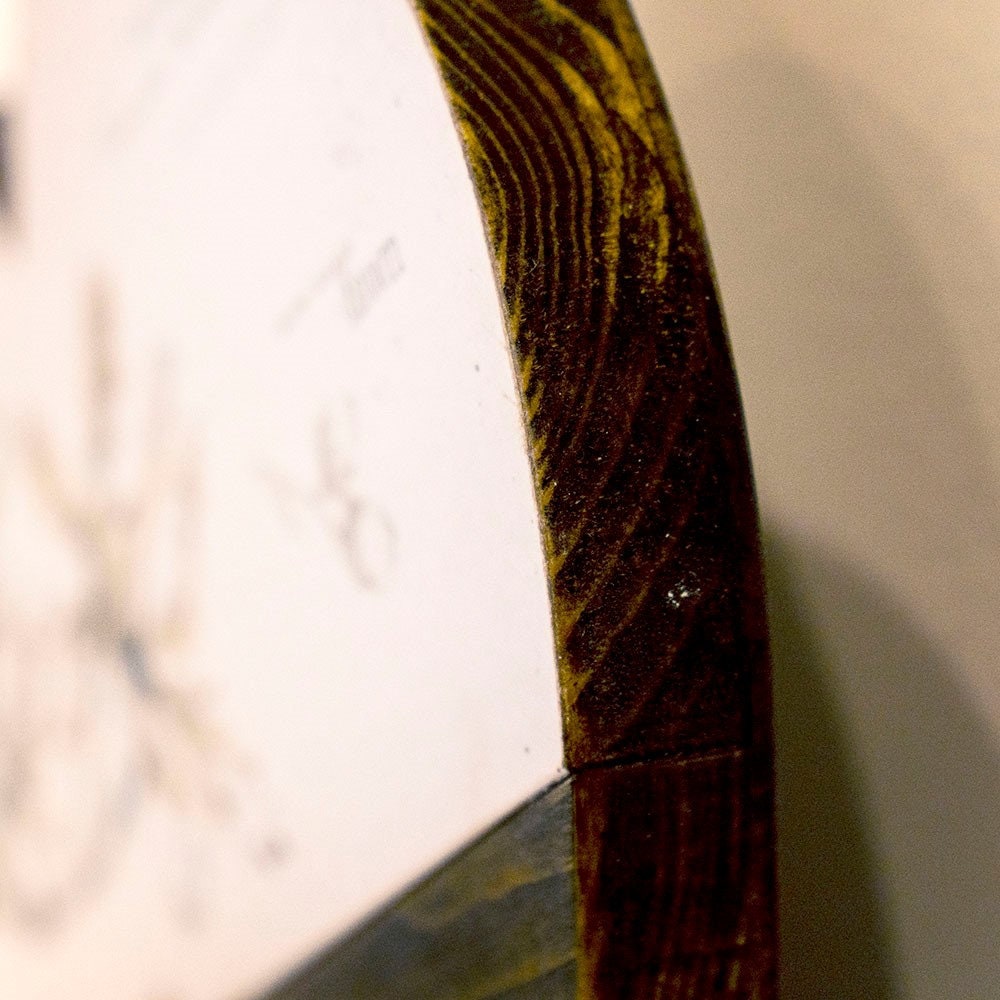 Cortado en mi taller. Tanto el corte, como el lijado y el resto de técnicas utilizadas en su realización son totalmente artesanales y realizadas por mí. Es por eso que ninguna pieza es igual a otra.