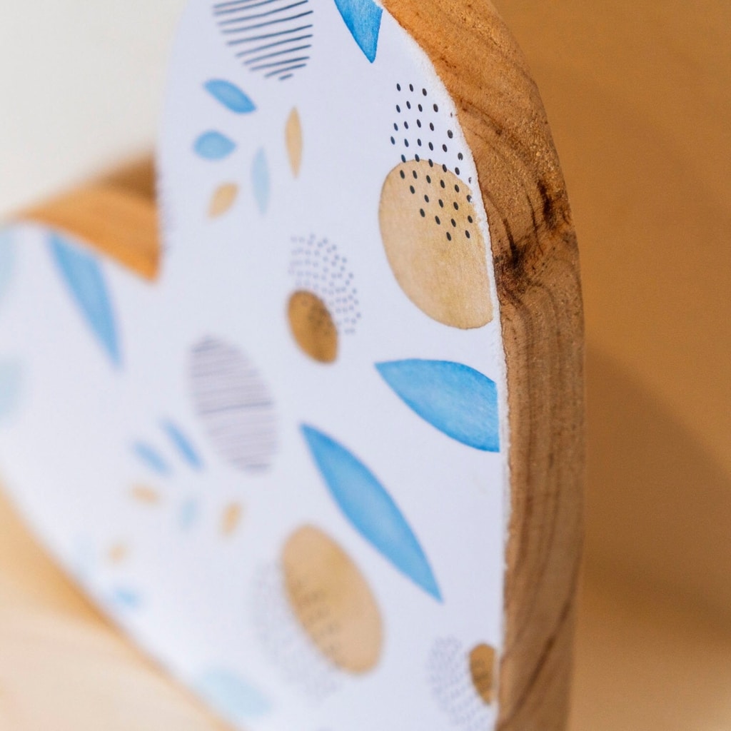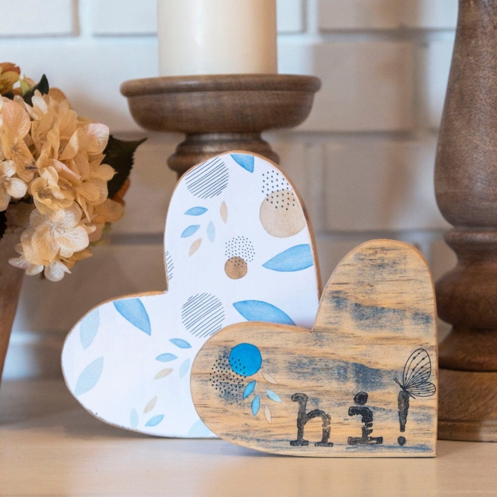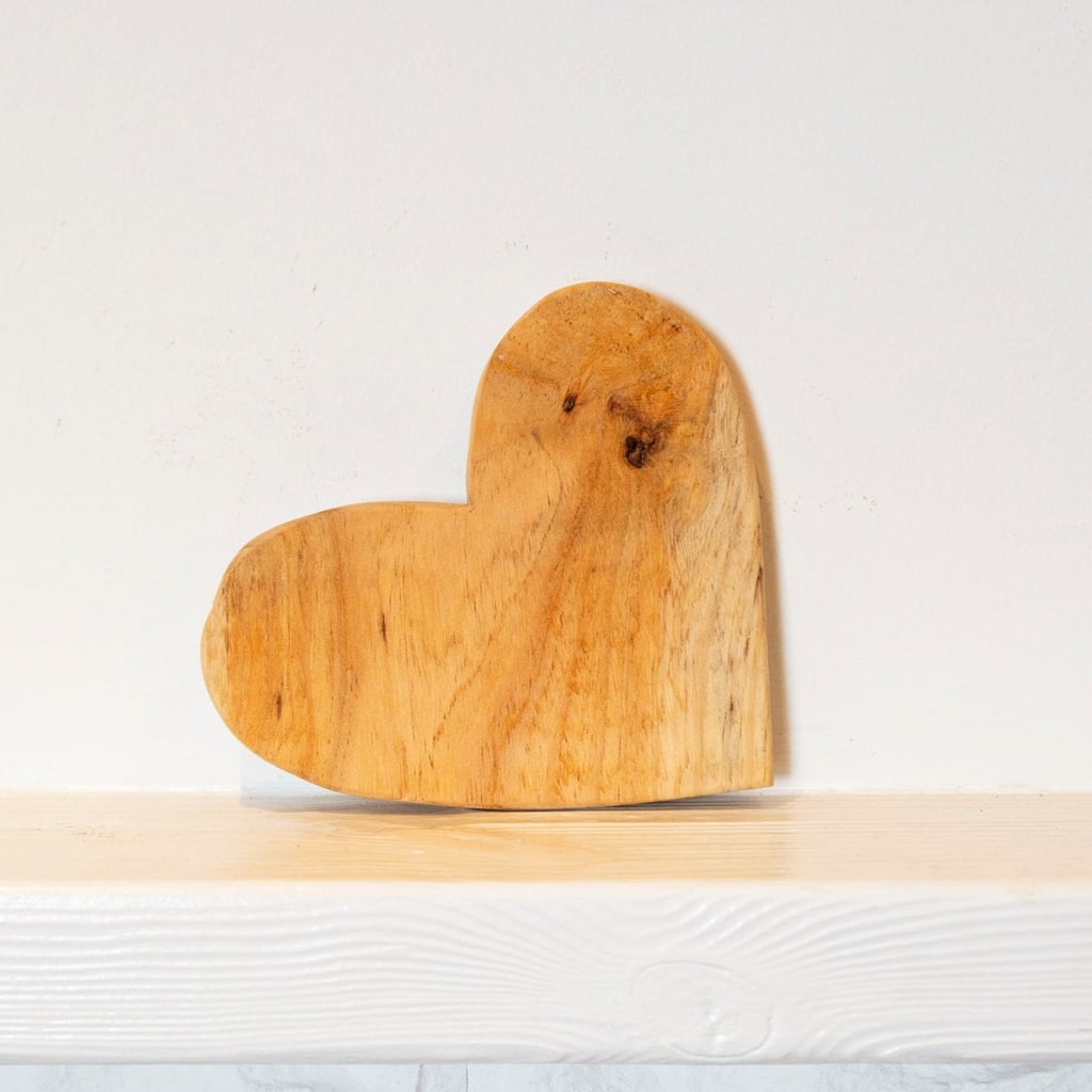 Dos corazones de madera de pino reciclada de estilo boho chic. Si te gusta el estilo boho, estos dos corazones son perfectos para decorar una repisa o la estantería de tu dormitorio.